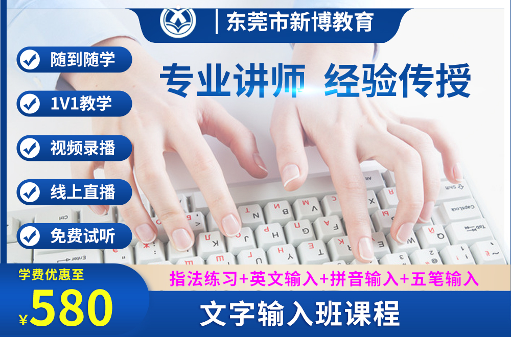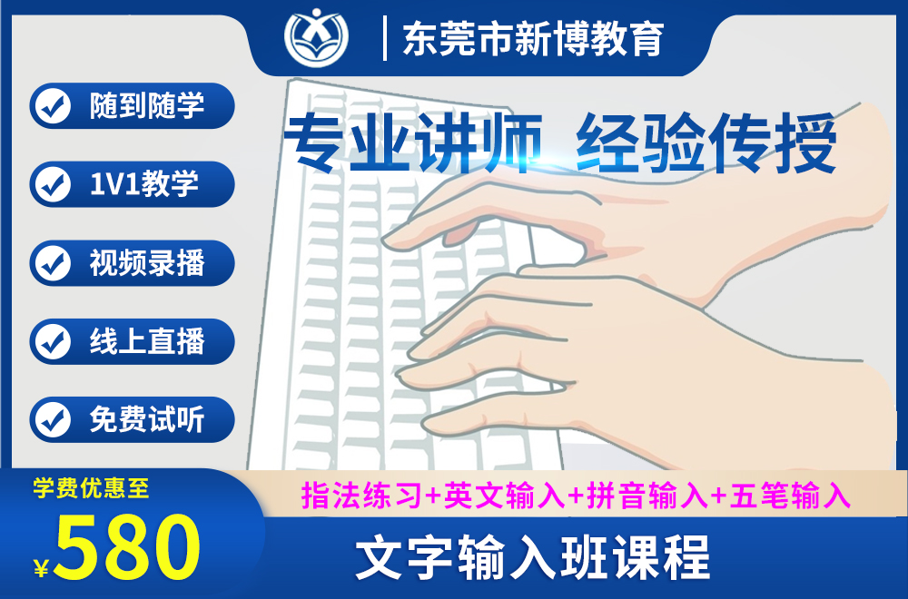 来吧!欢迎你报读新博教育的文字输入班来,我们是专业的培训机构,都是由二十几年经验的老师执教,完全能解决上述的痛点。
