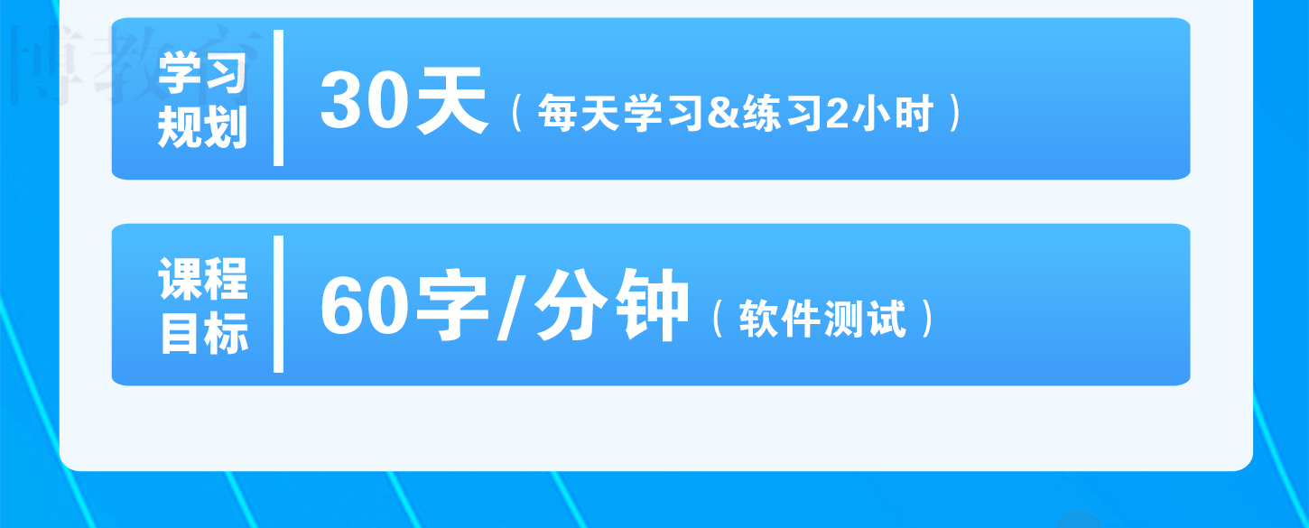 我们用多年的实战经验,让你30天速度达到60字/分钟甚至更高。