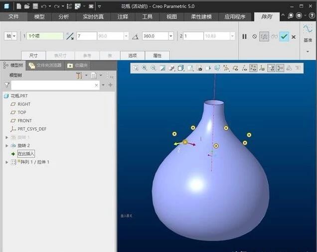 这是一个用CREO绘制花瓶的案例,步骤写得比较简单,请大家边练习,边思索。想想老师是如何操作,如何示范!(素材和内容均来自于网上,但也不失为可以练习命令与提高自己思维能力的一个好案例。